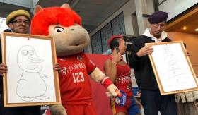 ロアッソ熊本大忘望年祭に、選手達やロアッソくん、マッスルアンバサダーのスガッシュさん、スタジアムアナウンサーの