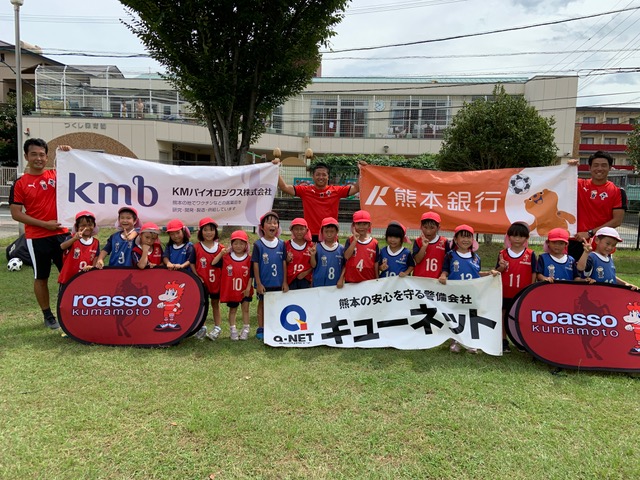9月2日(水)当クラブのキッズキャラバンスポンサーとしてご協賛いただいております、(株)キューネット様、(株)熊本銀行様、KMバイオロジクス(株)様、(株)熊本日日新聞社様のご協力のもと、つくし保育園でキッズキャラバンを行いました。