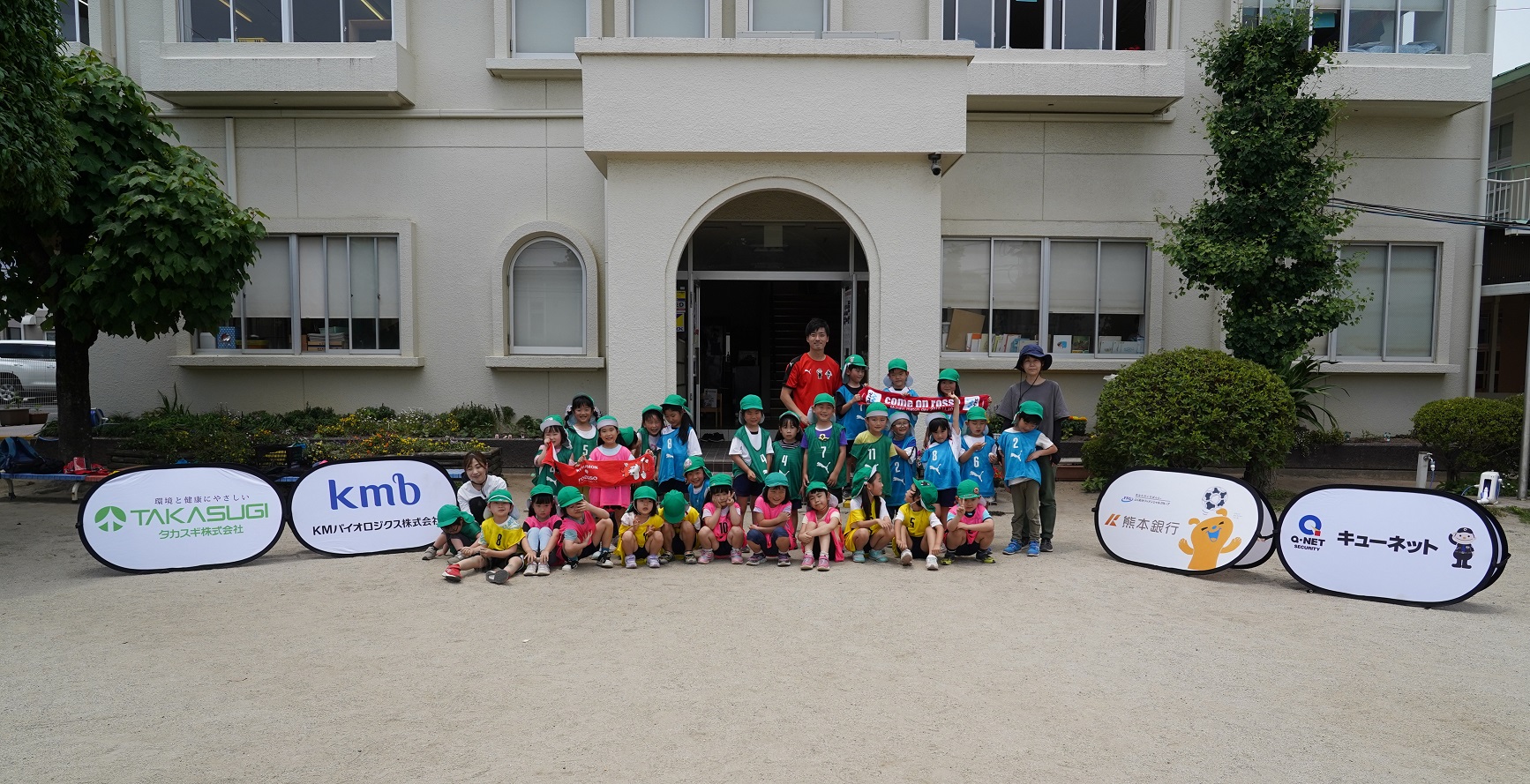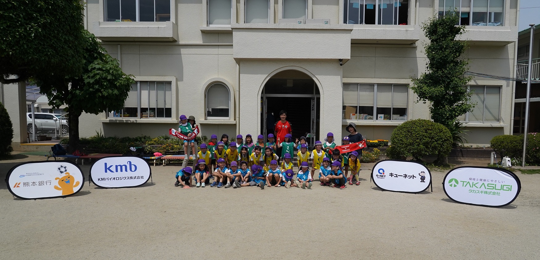 5月19日(木)に当クラブのキッズキャラバンスポンサーとしてご協賛いただいております、(株)キューネット様、(株)熊本銀行様、KMバイオロジクス(株)様、タカスギ(株)様のご協力のもと、めぐみ幼稚園でキッズキャラバンを行いました。
