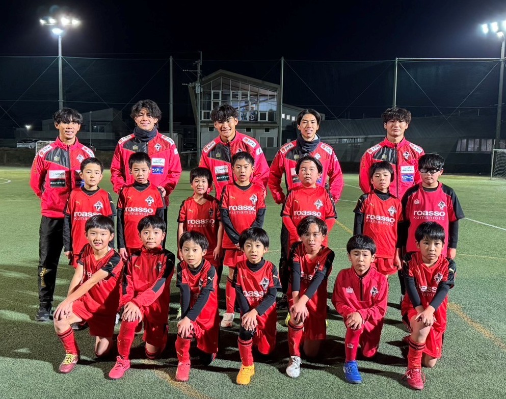 ロアッソ熊本スポーツクラブでは、サッカースクール・桜木コースに参加し、スクール生と一緒にサッカーをしました。