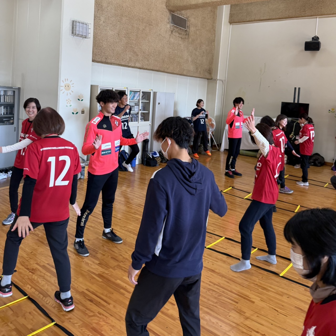 ロアッソウェルネスプログラムの熊本学園大学コースに参加し、参加者の皆さんと一緒に汗を流しました。