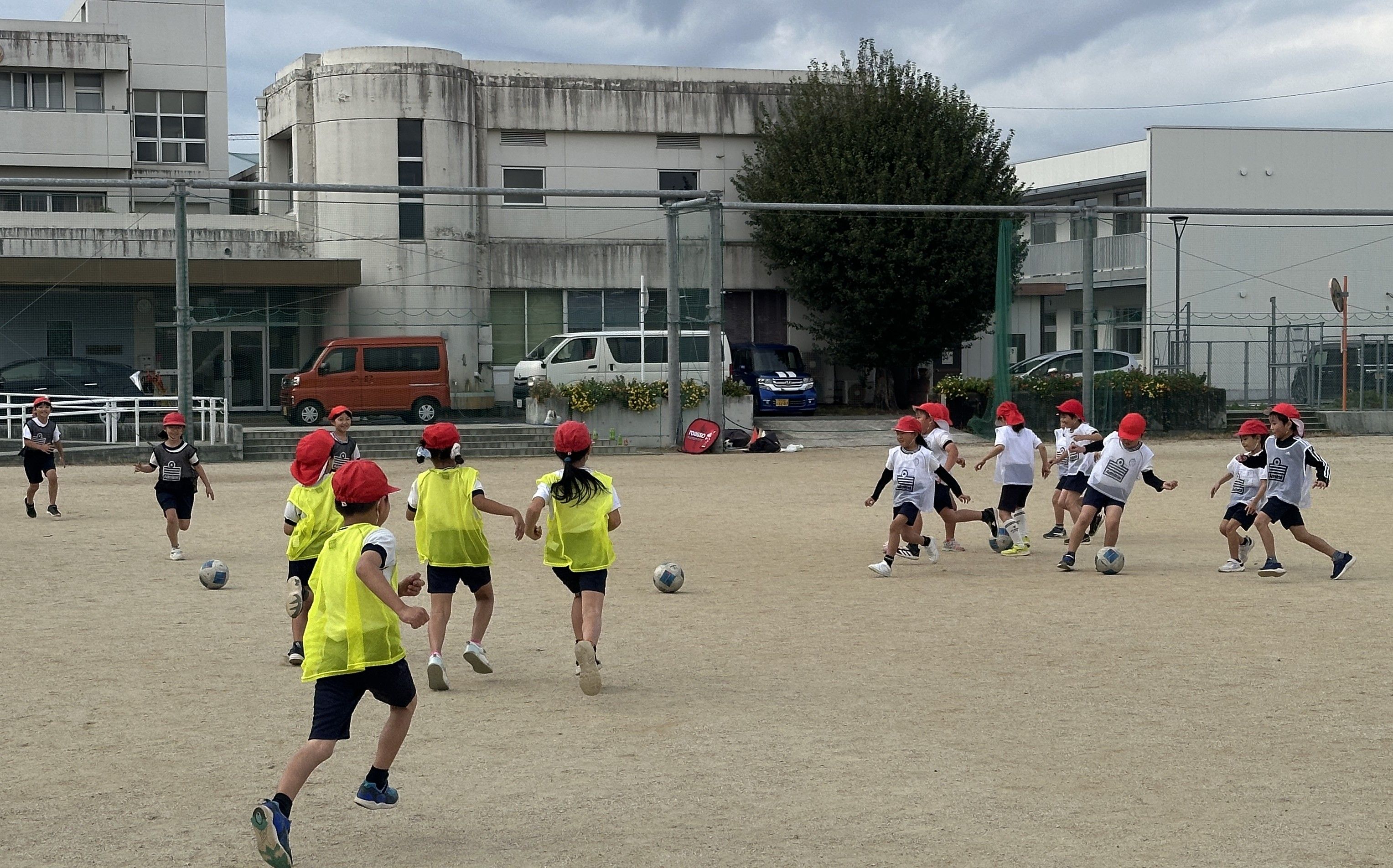 続いて、ドリブルやシュートの練習に挑戦し、初めてサッカーボールに触れる児童も積極的に取り組む姿が見られました。