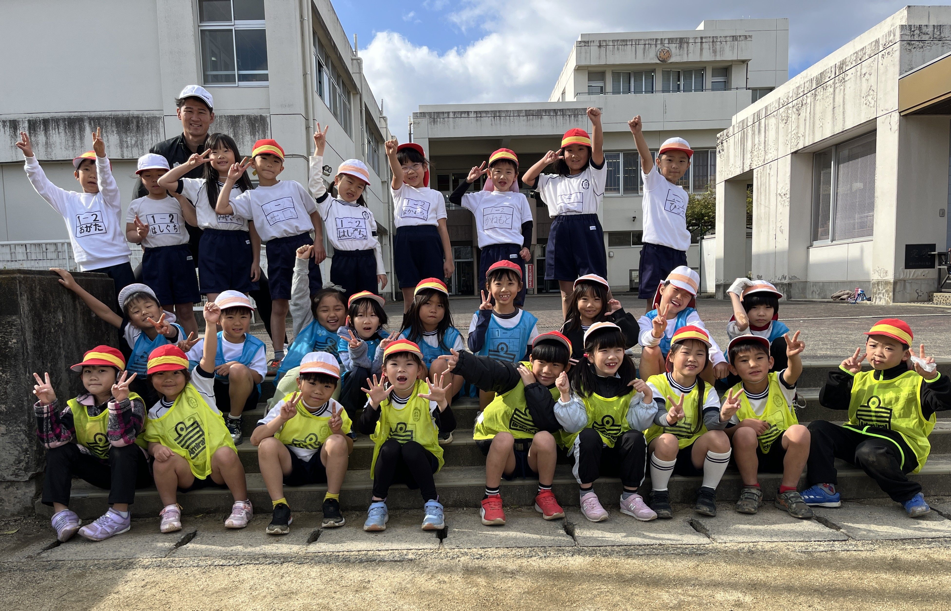 11月4日は2年生の1組から3組までの児童が参加し、ロアッソ熊本の普及コーチ3名とクラブマスコットのロアッソくんとともに、さまざまなプログラムに取り組みました。