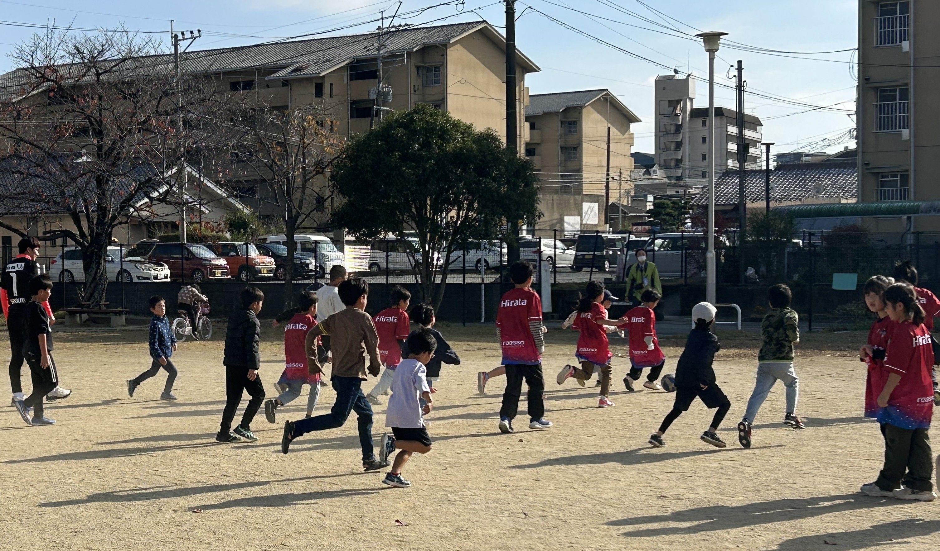 佐藤選手はサッカー担当。楽しく一つのボールを追いかけ、寒さも忘れて汗をたくさんかいている子ども達のえがおが印象的でした。