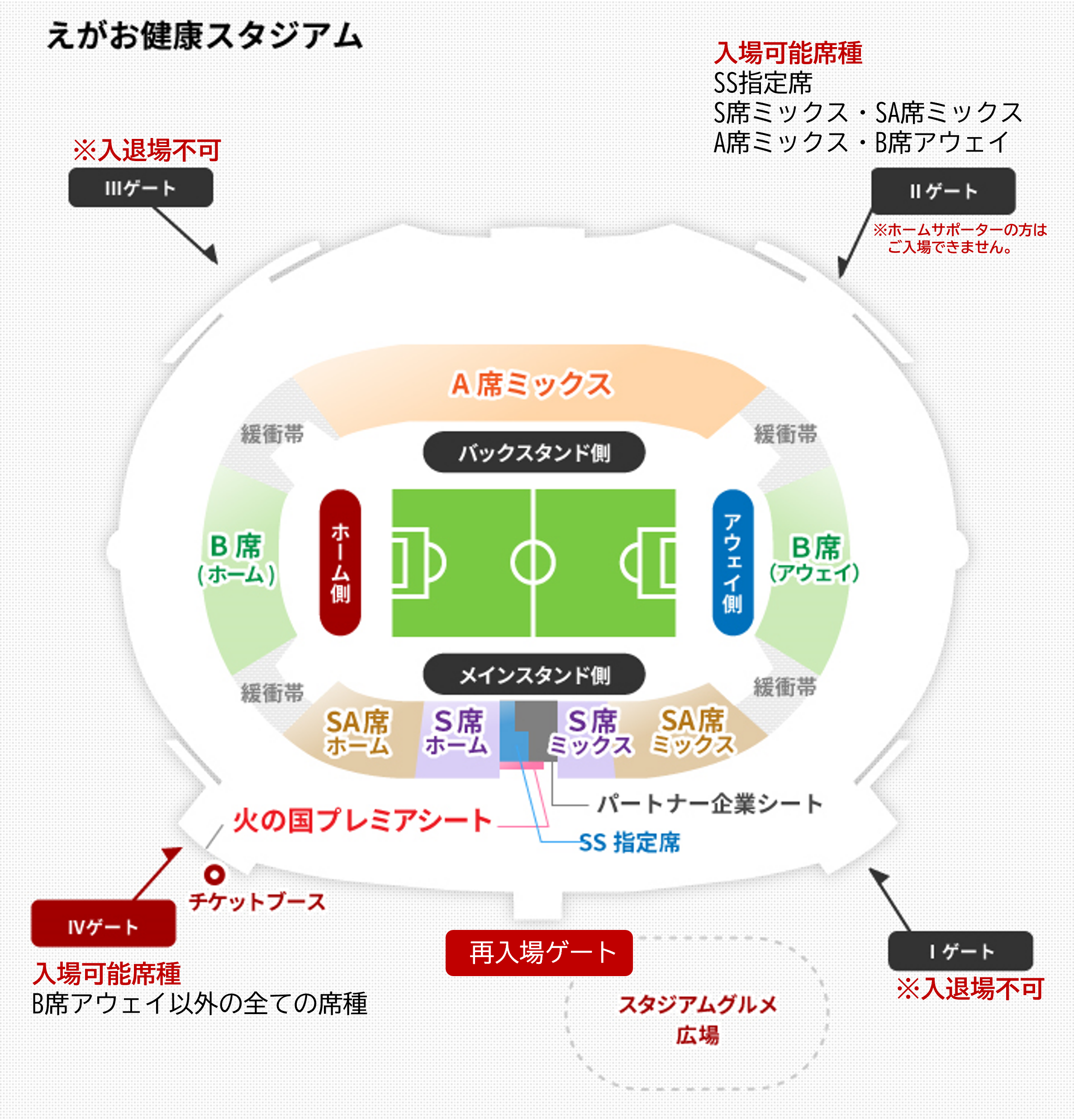 ※試合当日、お席のアップグレード(差額を支払っての席種変更)・ダウングレード(席種変更)はできません。予めご了承ください。