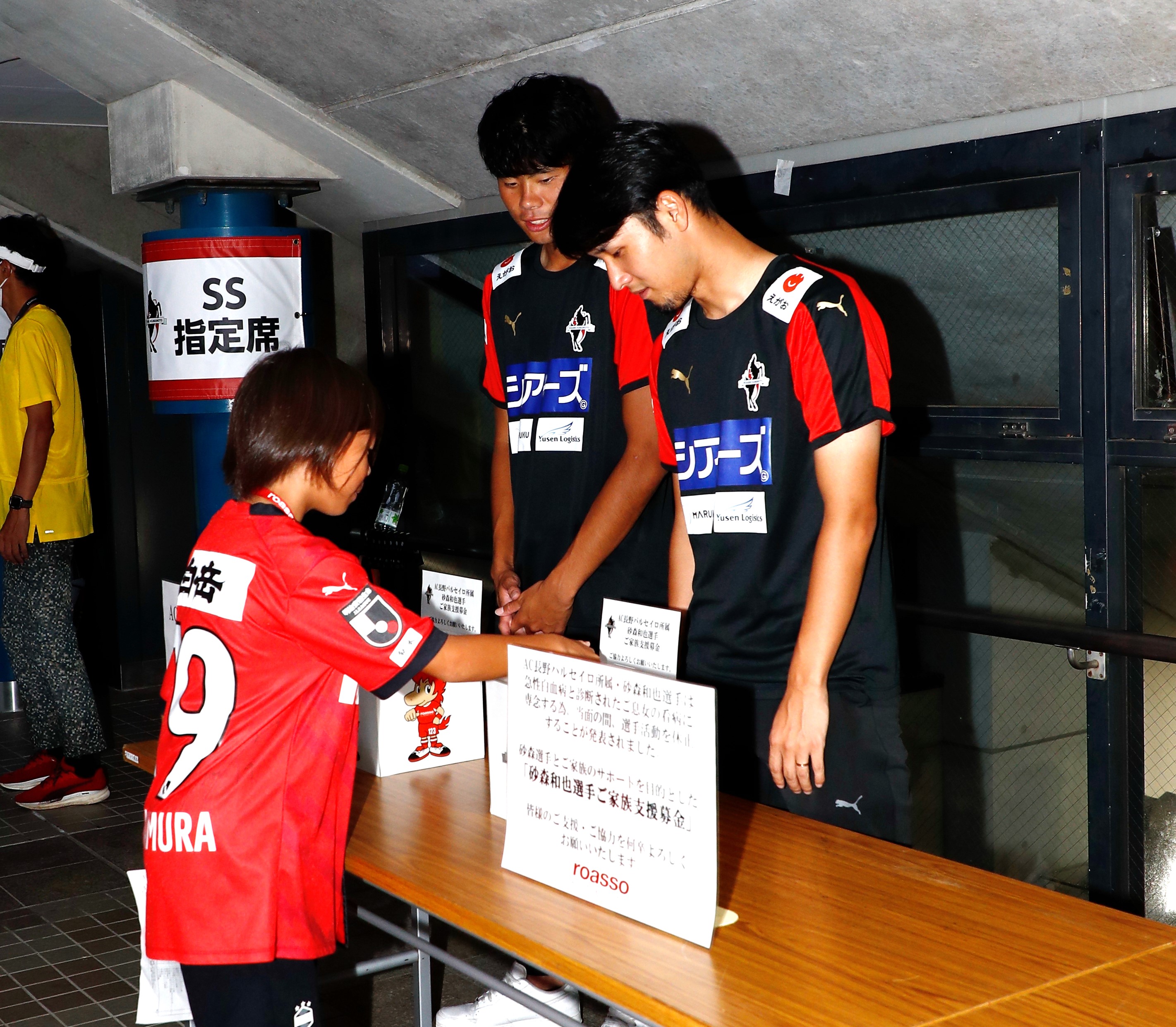 7/24ロアッソ熊本ホームゲーム(ファジアーノ岡山戦)にて実施いたしました「砂森和也選手ご家族支援募金」は、募金額134,541円が集まりました。 皆様のご協力、誠にありがとうございました。 7/16(大分戦)と7/24(岡山戦)にて、皆様よりいただきました募金(合計535,415円)は日本プロサッカー選手会(JPFA)を通じて、砂森選手のご家族へ届けられます。