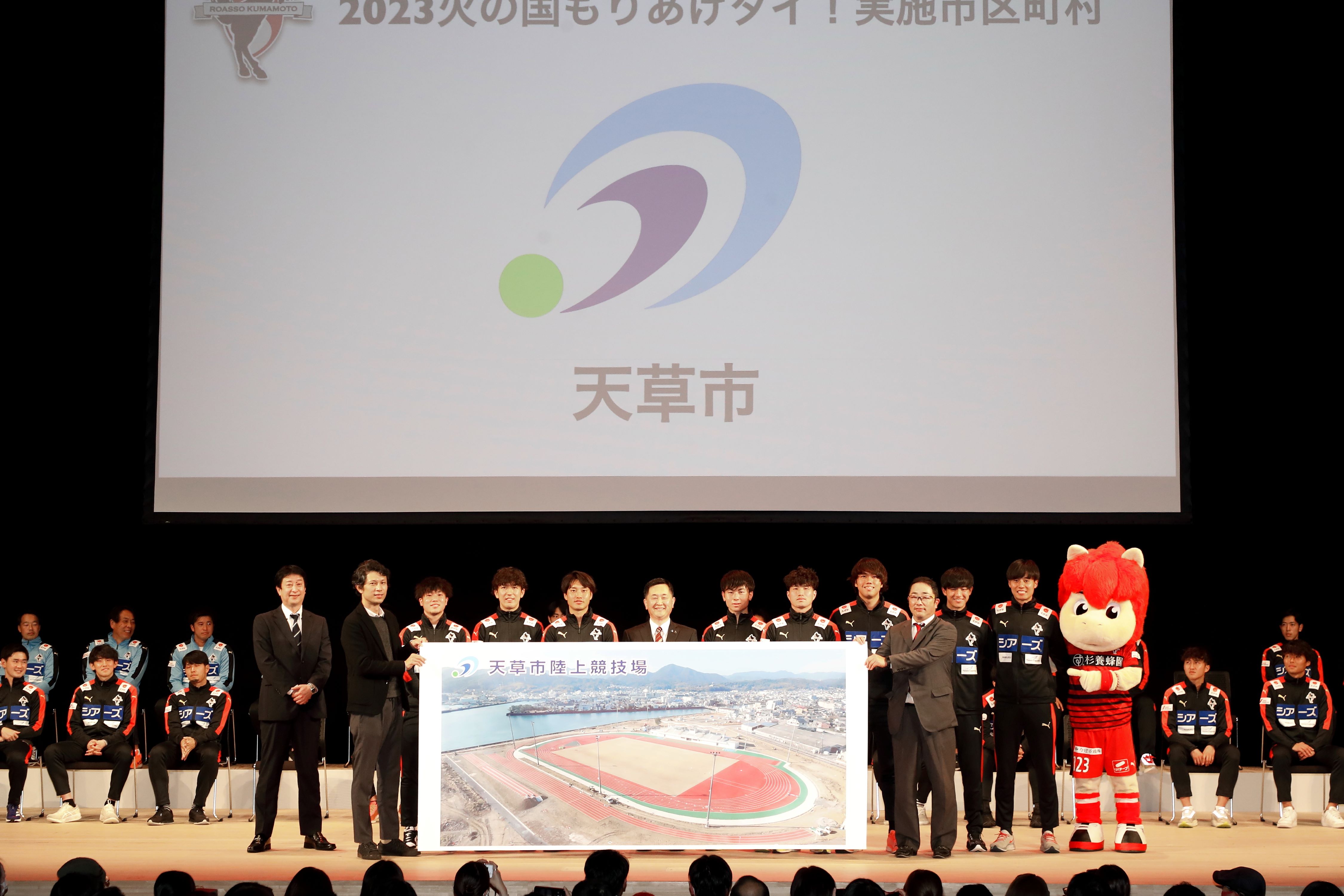 このプロジェクトは、ロアッソ熊本の選手等が行政や地域住民の皆様との交流を図りながら、地域の「まちづくり」や「まちおこし」の応援を行い、県民の皆様と共に熊本を盛り上げていくことを目的とした活動で、2023シーズン所属選手により『ロアッソ熊本“火の国もりあげタイ!”』 プロジェクト実施自治体である「天草市の魅力」を様々な角度より発信していきます。