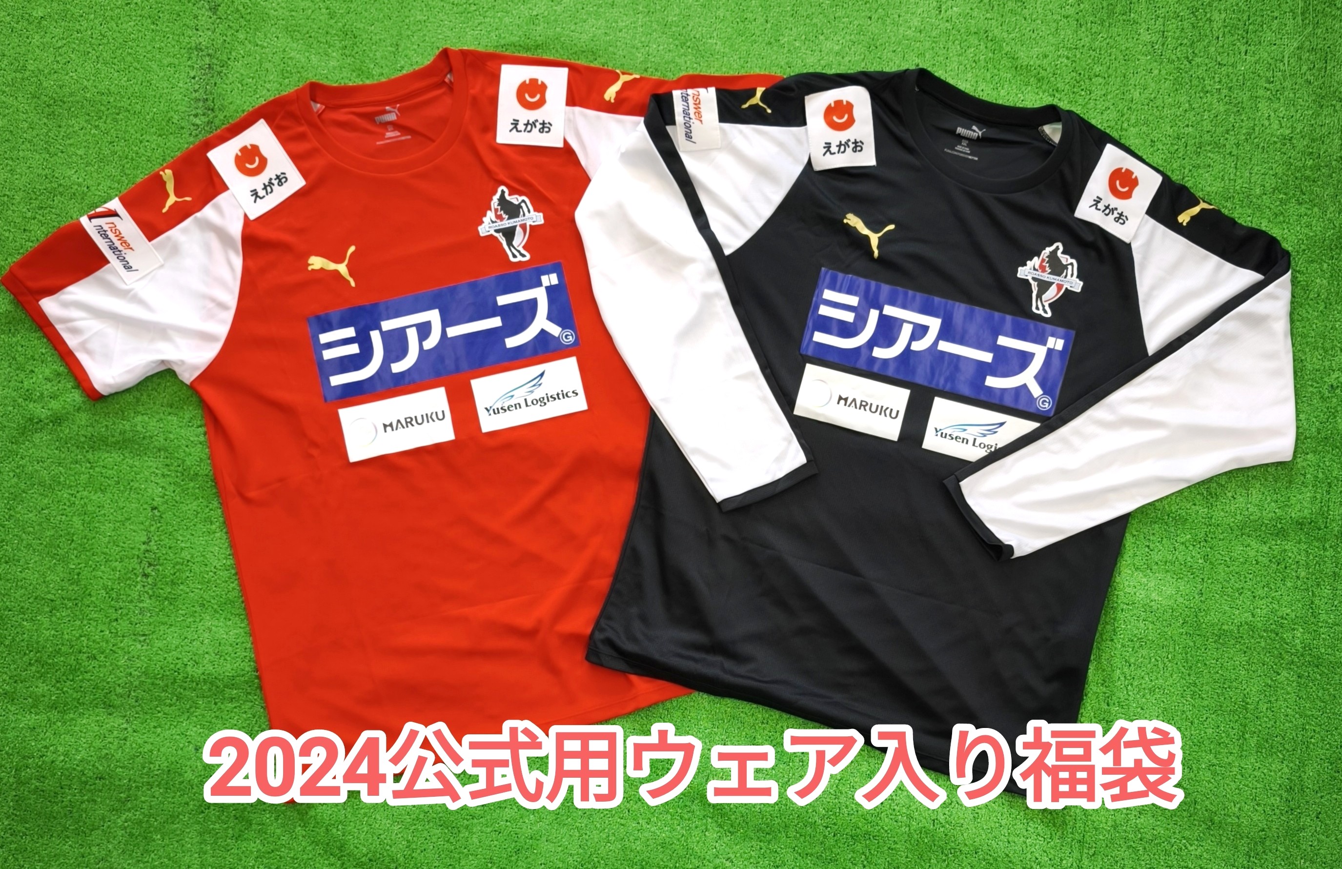 2024シーズン公式用ウェア(長袖シャツ、半袖シャツ)とロアッソ熊本グッズ数点の入った福袋を販売いたします。