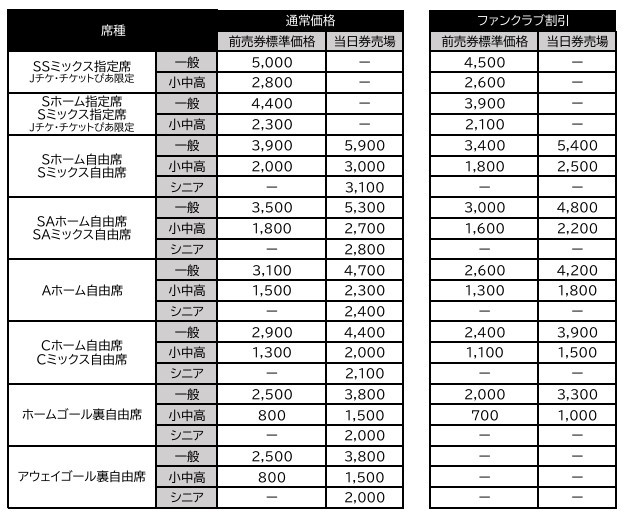 ゴール裏での観戦をご希望の場合はゴール裏自由席をご購入ください。