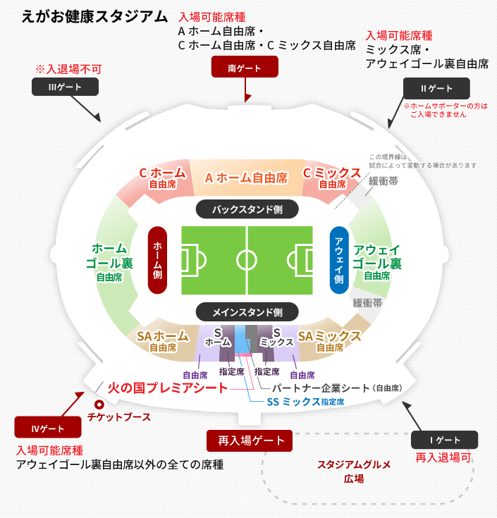 メインスタンド側での観戦をご希望の場合はS自由席をご購入ください。