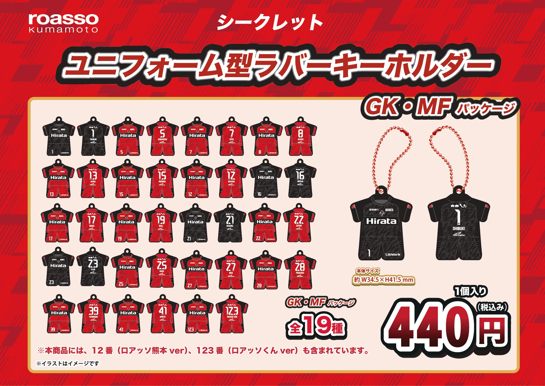 登録12選手+No.12(ロアッソ熊本)+No.123(ロアッソくん)